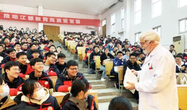 「同學們,你們平時都是怎樣點蠟燭的?我有個不一樣的辦法,對蠟燭噴水能讓它燃燒起來,你們信不信?」4月6日,北京化工大學英籍特聘教授戴偉(David G.Evans)應邀來到江都中學作了一場生動的科普講座,為江都中學第29屆「科學藝術節」完美收官添上精彩一筆。